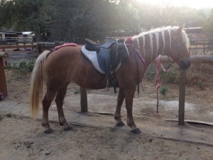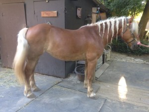 The fitter noted only a bit of soreness, mainly towards the back of the saddle if I’m recalling correctly. Her back looks generally good. She affirmed my belief that the pony has big shoulders, no withers, and needs a relatively narrow tree but with appropriate flare. She also confirmed that a crupper is likely always going to be necessary: it’s just how she’s built, there’s nothing to hold the saddle back.