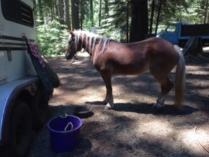 Per usual, Confetti hopped off the trailer and dove for the nearest pile of hay. That’s my pony! We hand-walked around camp, checked in, chatted with folks, and were suitably demoralized by a rider camped near to us who kept reiterating what a tough ride it is and how hard it would be. Folks: this is not how you encourage new riders, new 50 riders, or riders trying to make a comeback to the sport. The attitude was along the lines of ‘you’re going to have an awfully hard time and probably fail, but enjoy the scenery!’ If I did not have several years of successful near-turtle LDs, that would have been super depressing. As it was, it was just mind-boggling and we finally wrote it off as someone a bit crazy.