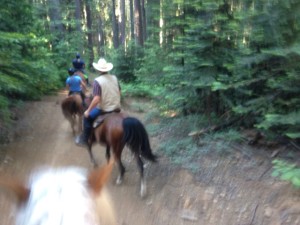 Then uphill some more, and downhill some more, and redwoods, and trees! and it was gorgeous. It would have been quite excellent for photos had we not been behind other riders. I was using both hands to ride and did not have a spare to take photos with. Back up and before we knew it, into the finish.